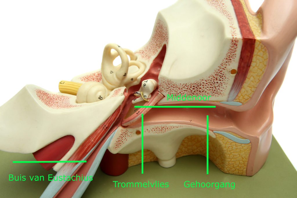 De buis van Eustachius verbindt het oor met de keel. Via deze weg kan afval uit het oor via de keel worden afgevoerd. Bovendien wordt via deze verbinding de luchtdruk in het middenoor gelijk gehouden aan de buitendruk. Door ontsteking en zwelling van het slijmvlies van neus en keel kan deze verbinding verbroken worden. Er verzamelt zich dan vocht achter het trommelvlies. De druk in het middenoor kan niet meer gelijk gehouden worden en verandert telkens. Hierdoor gaat het trommelvlies intrekken. Het gehoor kan dan veranderen en er kan gehoorverlies optreden. Er kan een gevoel ontstaan dat lijkt op wat in een opstijgend vliegtuig kan worden ervaren. Als de schade aan de buis van Eustachius blijvend is, dan kunnen er buisjes geplaatst worden in het trommelvlies. Zo’n buisje is meestal gemaakt van kunststof en is niet groter dan een halve luciferkop.
