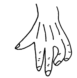 | ontstaat bij uitval van de nervus radialis | ontstaat bij uitval van de nervus ulnaris | ontstaat bij uitval van de nervus medianus |